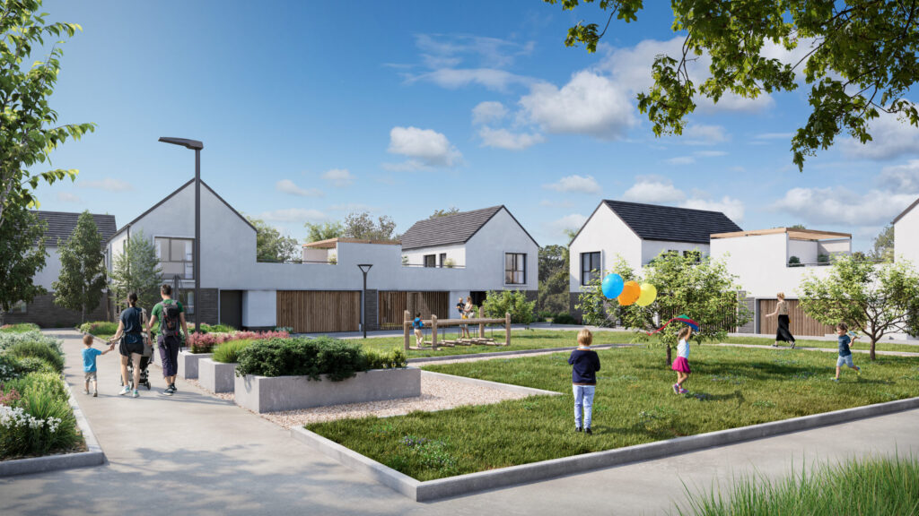 Doran Cray Architects collaborating closely with Proctor Matthews Architects developed the scheme by expanding the Sycamore Square concept across the masterplan lands creating urban ‘Clachans’ within the development.